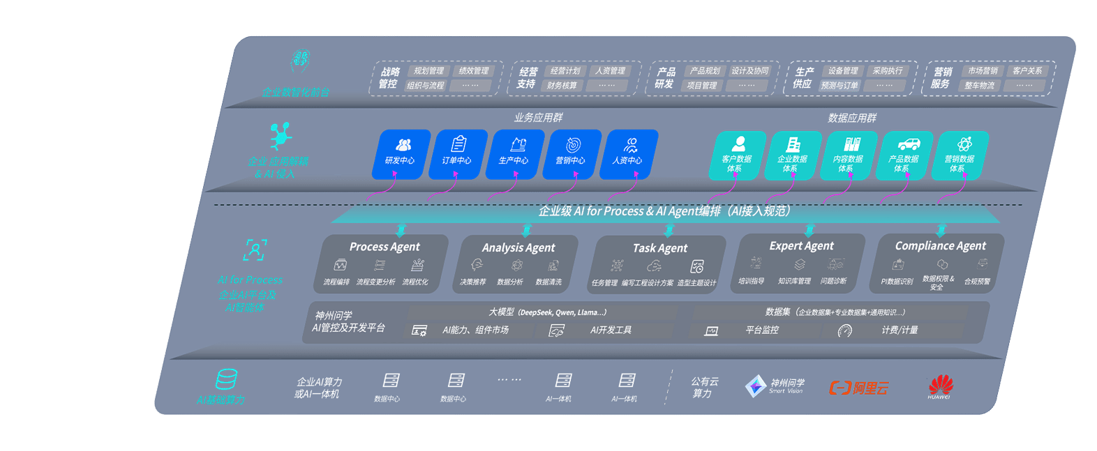摩登7问学智车解决方案是一套基于AI技术的汽车行业智能化系统,,,覆盖从底层算力到顶层AI应用的全栈方案。。。方案由算力层、、模型层和应用层组成:算力层,,,方案支持多种一体机配置,,,,具备云端灵活部署、、、多云适配以及动态优化计算资源的能力;模型层,,,,摩登7问学平台版提供了企业级AI应用一站式构建与管理平台,,,支持基于后训练强化技术的汽车企业专属模型的训练、、、、评测和运营;应用层,,,,摩登7问学DeepSeek版提供包括超级员工、、、、智能招采、、智能营销、、、、智能客服、、AI for BI等一系列解决方案,,,,可助力汽车行业实现数字化转型,,,,让管理更智能、、、、响应更敏捷。。