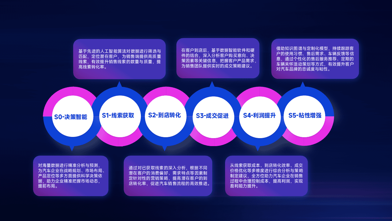 通过拓宽潜在客户来源、、、、优化线索分配并提高到店转化率,,以增强销售效率。。。同时,,利用线索数据不断优化分析模型,,,,有效提升转化率,,扩大营销影响力。。